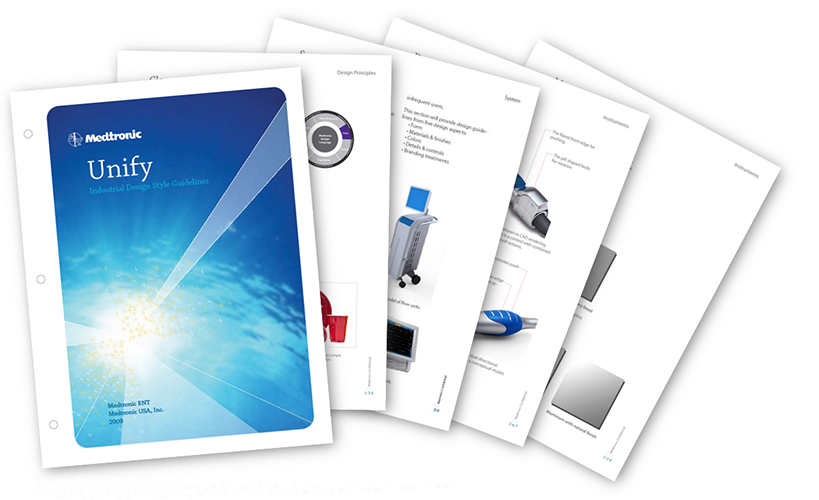 One clear, strong voice from Medtronic Surgical Technologies(MST) Medtronic Surgical Technologies has acquired new businesses, new technologies as well as absorbed and consolidated other units within. This rapid growth has resulted in little design consistency across its portfolio. In 2009 Medtronic partnered with Metaphase to develop one unified design language. As the principle designer working with MST executives, my role was to thoroughly understand the strategic thinking of MST high level management , lead the effort to develop the overall strategy, define the key attributes in principle, design and develop the ID language and the manual. The manual was printed in hundreds and distributed in Medtronic as a guide for their R&D teams use across the nation.